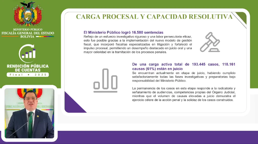 Del total de casos activos, 83.916 están vinculados a delitos en razón de género. The post Fiscalía registra más de 193.000 casos activos y reporta 164.861 resoluciones en 2025 appeared first on La Razón .