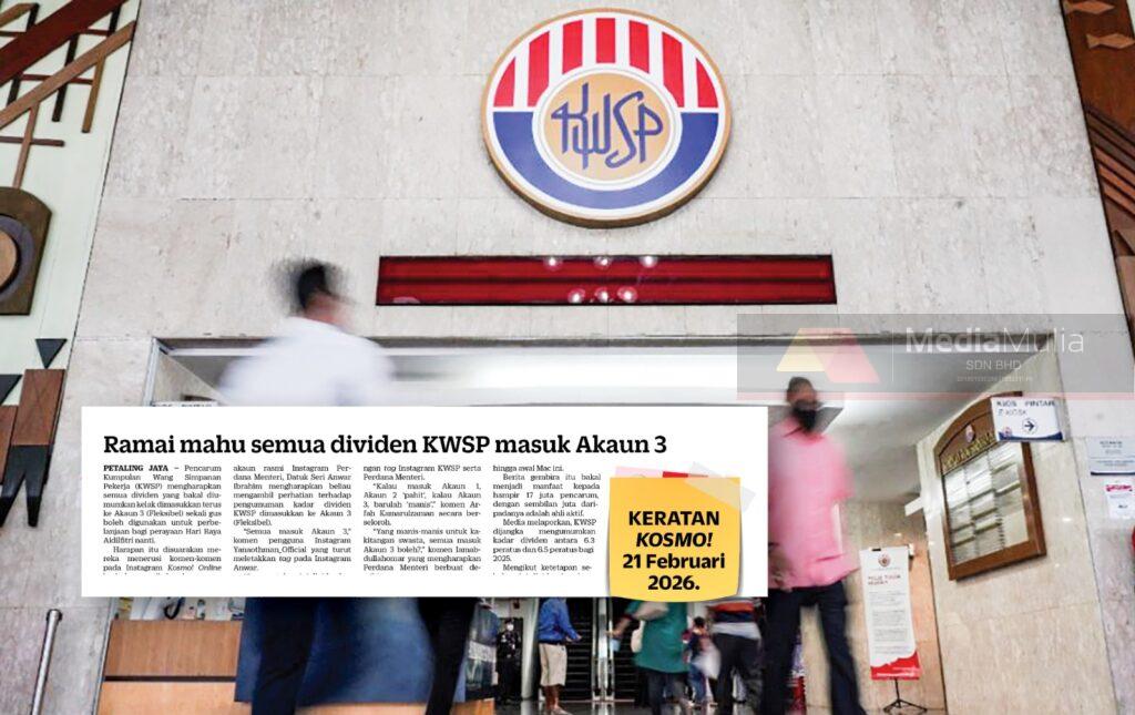 PETALING JAYA – Kerajaan diminta mempertimbangkan kelonggaran dengan menaikkan kadar agihan dividen Kumpulan Wang Simpanan Pekerja (KWSP) ke Akaun 3, sekurang-kurangnya 20 peratus berbanding 10 peratus ketika ini. Seorang pencarum, Che Ahmad Irfan Che Ruzaidi, 31, berkata, peningkatan kadar dividen itu mampu membantu menampung komitmen terutama pada musim perayaan. “Saya rasa 20 peratus pun sudah ... Read more The post Tak dapat semua, 20% pun okey – Pencarum KWSP appeared first on Kosmo Digital .