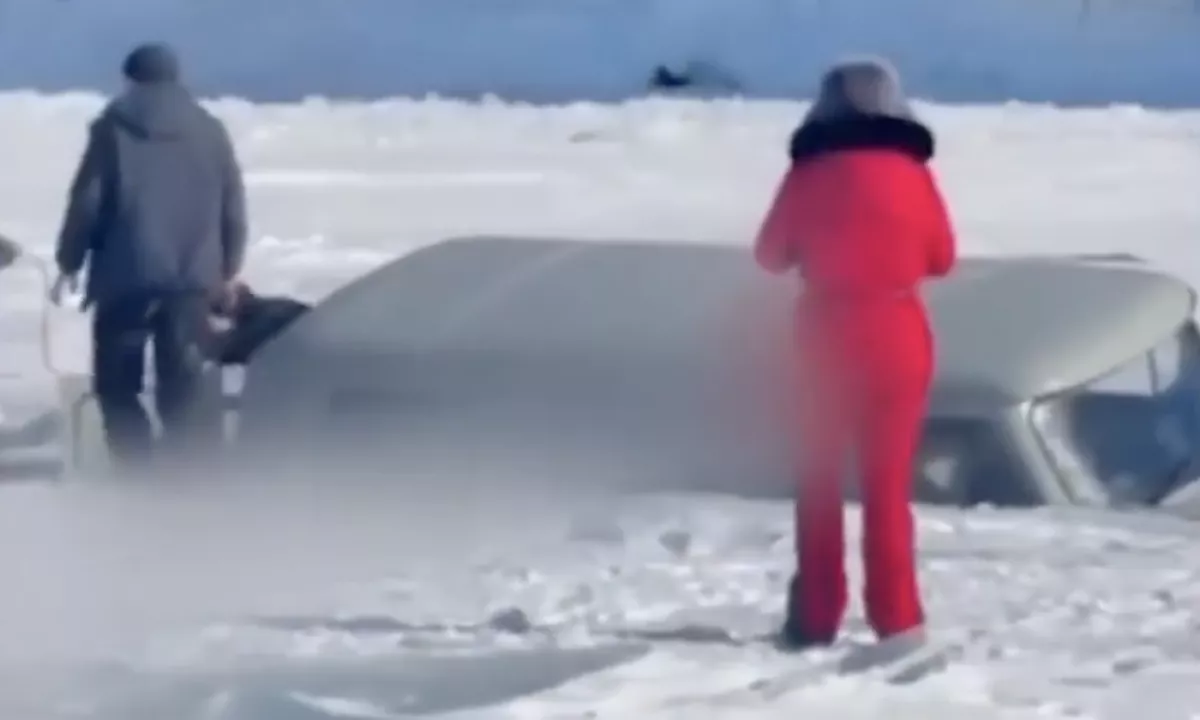 Turistični avtobus s kitajskimi potniki je v le nekaj sekundah prebil led in izginil pod gladino.