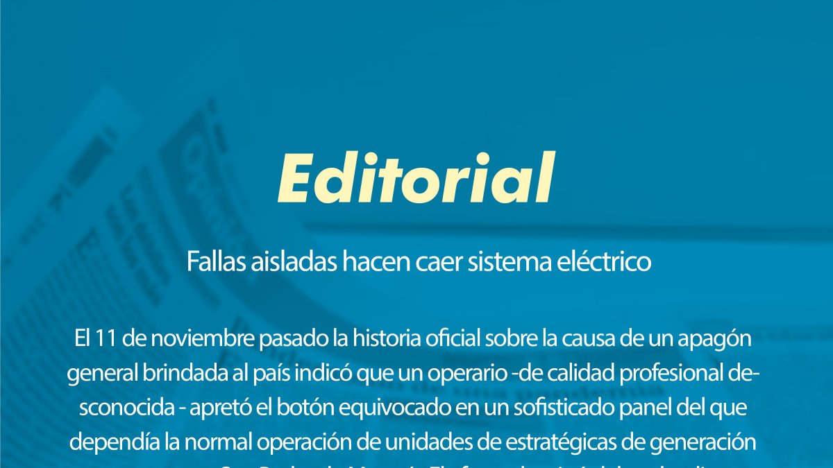 El detonante de ayer de un reparto masivo de apagones súbitos, incluyendo algunos bastante prolongados, fue clasificado de inmediato por más de una fuente oficial como una “falla mayor” del Sistema Eléctrico Nacional Integrado de “causa desconocida”