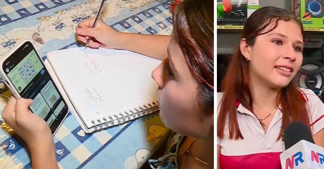 La joven de 16 años estudia desde su celular por falta de equipo, pero nunca se rinde. Publicado en Repretel .