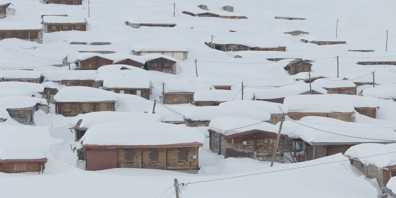 Rize’nin Çamlıhemşin ilçesine bağlı Kavrun Yaylası'nda kar kalınlığı 3 metreyi aştı. Köy evlerinin beyaz örtüyle kaplandığı yayla, dron kamerasıyla görüntülendi.