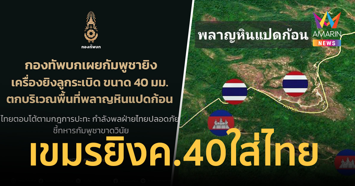 ชายแดนเดือด! กัมพูชายิง ค.40 บุกพลาญหินแปดก้อน ทหารไทยยิง M79 สวนโต้ตอบตามกฎการปะทะ กำลังพลฝ่ายไทยปลอดภัย ชี้ทหารกัมพูชาขาดวินัย
