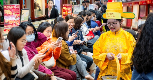 Từ sáng sớm, người dân đã xếp hàng dài trên phố Trần Nhân Tông mua vàng giữa lúc giá neo cao 181-185 triệu đồng/lượng, cửa hàng phải phát số thứ tự và chuẩn bị cả khoai lang luộc để “tiếp sức” khách chờ nhiều giờ.