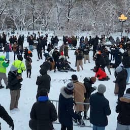 Video | Honderden mensen gooien met sneeuwballen in New York