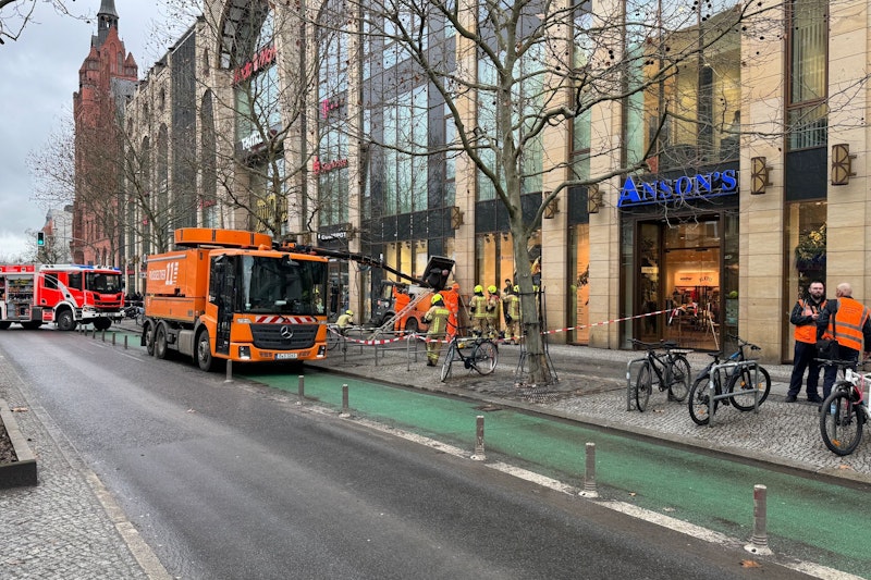 So etwas passiert nicht jeden Tag! Blaulicht und Großaufgebot vor dem Schloss Steglitz wegen eines ungewöhnlichen Unfalls.
