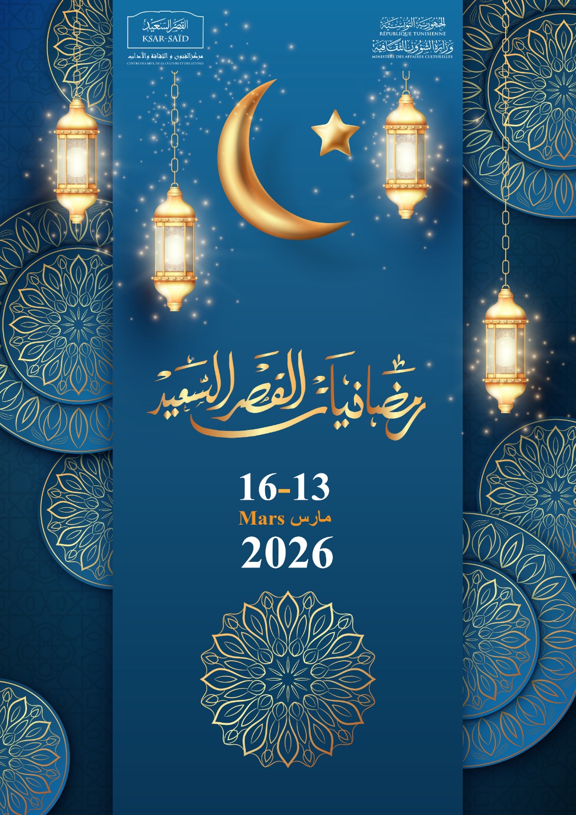 أعد مركز الفنون والثقافة والآداب برنامجا يتضمن أربع سهرات فنية ضمن برنامج الدورة الرابعة لرمضانيات القصر السعيد بباردو، وذلك من 13 إلى 16 مارس 2026. رمضانيات القصر السعيد هي موعد سنوي دأب على تنظيمه المركز تحت إشراف وزارة الشؤون الثقافية، في إطار إحياء ليالي شهر رمضان الكريم، من خلال برمجة سهرات