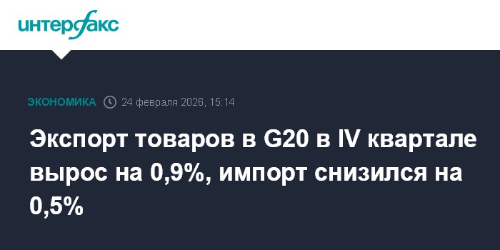 Торговля товарами государствами G20 с поправкой на сезонные колебания в четвертом квартале 2025 года продемонстрировала разнонаправленные изменения, сообщается в отчете Организации экономического сотрудничества и развития (ОЭСР).