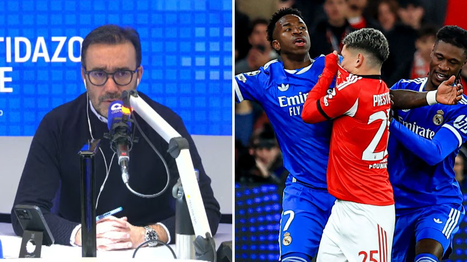 El argentino Gianluca Prestianni, jugador del Benfica, ha sido suspendido provisionalmente por el Comité de Ética y Disciplina de la UEFA. La sanción le impide jugar el partido de vuelta de la eliminatoria de acceso a octavos de la Liga de Campeones ante el Real Madrid en el estadio Santiago Bernabéu tras los supuestos insultos racistas al brasileño Vinicius en el partido de ida. La decisión se ha adoptado por la "presunta infracción del artículo 14 del Reglamento Disciplinario de la UEFA en relación con un comportamiento discriminatorio". A los pocos minutos de conocerse, el Benfica ha respondido con un comunicado en el que confirma que recurrirá la decisión, aunque es poco probable que los plazos permitan su participación en el partido de este miércoles. El club portugués ha afirmado que "lamenta haber sido privado del jugador mientras el proceso todavía está bajo instrucción" y ha reafirmado su "compromiso inquebrantable con la lucha contra todas las formas de racismo o discriminación", valores que considera parte de su identidad histórica. En este contexto, el periodista Juanma Castaño, en El Partidazo de COPE, ha analizado las consecuencias que habría tenido la participación de Prestianni. Según Castaño, la UEFA "ha visto una tabla de salvación" con esta suspensión, ya que se esperaba "un auténtico escándalo" en el Bernabéu, con gestos como la posible retirada del saludo por parte de los jugadores del Madrid. Castaño ha señalado que el ambiente habría sido muy hostil: "Iba a haber una bronca monumental cada vez que tocara el balón el jugador del Benfica, porque, presumiblemente, iba a jugar". Además, ha planteado una hipótesis de gran impacto: "Imagínense ustedes que, por cualquier razón, Prestiani decide esta eliminatoria (...) y resulta que el mismo que supuestamente ha insultado con palabras racistas a Vinicius determina que el Madrid se vaya fuera de la Champions". Finalmente, Juanma Castaño ha introducido el debate sobre una posible injusticia si el jugador es finalmente exculpado por la UEFA. En ese escenario, la pregunta que queda en el aire es clara y pone en cuestión la decisión del organismo. El comunicador se pregunta de forma retórica qué ocurriría si el jugador es absuelto: "¿Quién le devuelve este partido a Prestiani? Porque, claro, él podrá decir, ya, pero, entonces, el partido del Bernabéu, que era importante, ¿quién me lo devuelve?".