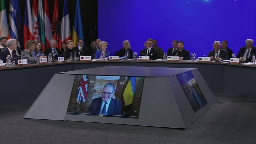 Ukrainan tukijat kokoontuivat Kiovassa tiistaina. Vaikeudet etäyhteydessä saivat aikaan hupaisan reaktion.