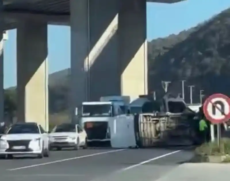 devrilen minibüs, yolun karşısına geçti