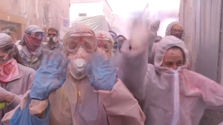 De Griekse stad Galaxidi veranderde in een kleurrijk slagveld tijdens de jaarlijkse 'meel-oorlog'. De eeuwenoude traditie markeert het einde van het carnavalsseizoen.