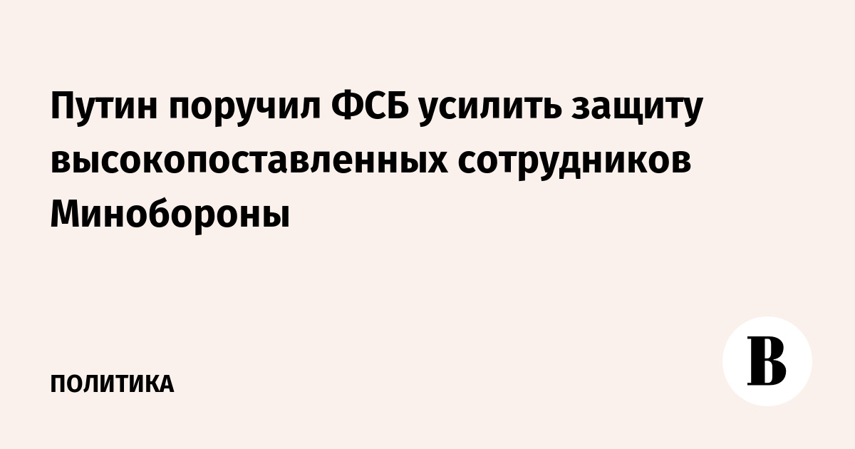 Путин поручил ФСБ усилить защиту высокопоставленных сотрудников Минобороны