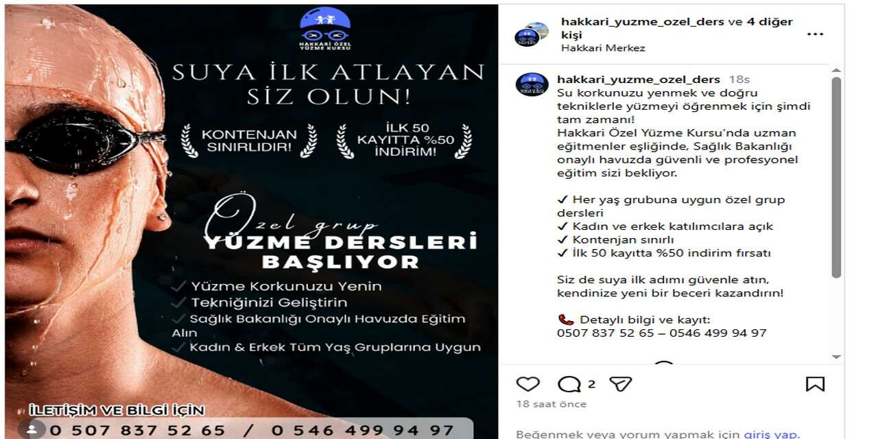 Hakkâri’de su korkusunu yenmek ve doğru tekniklerle yüzmeyi öğrenmek isteyenler için özel yüzme kursu başlatıldı.
