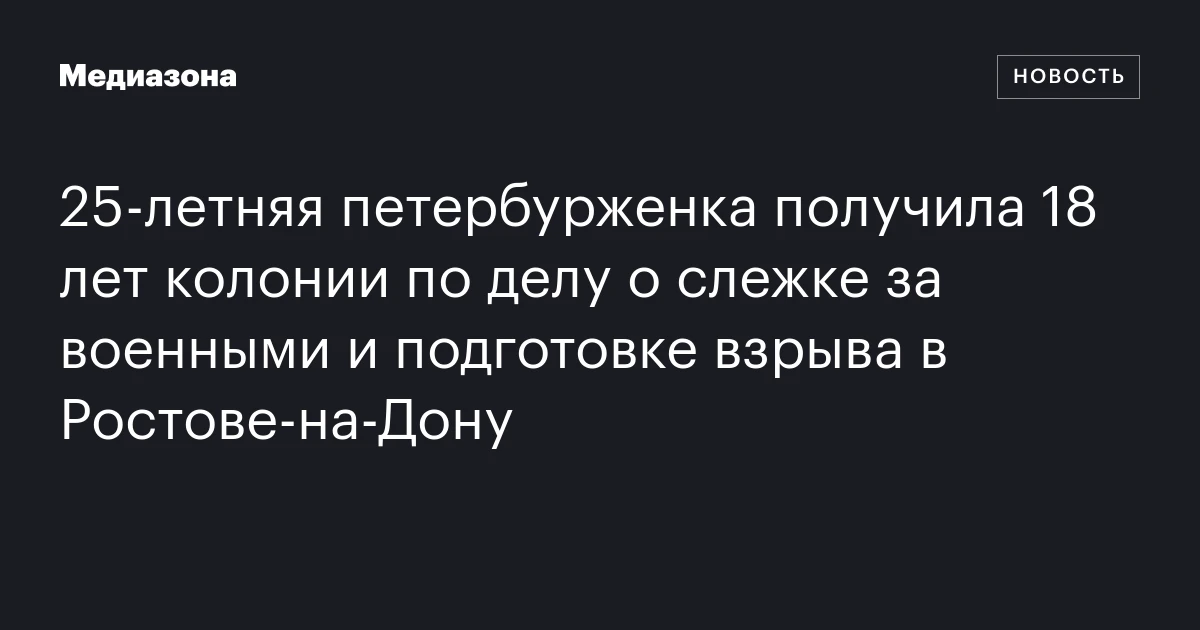 25‑летняя петербурженка получила 18 лет колонии по делу о слежке за военными и подготовке взрыва в Ростове‑на‑Дону