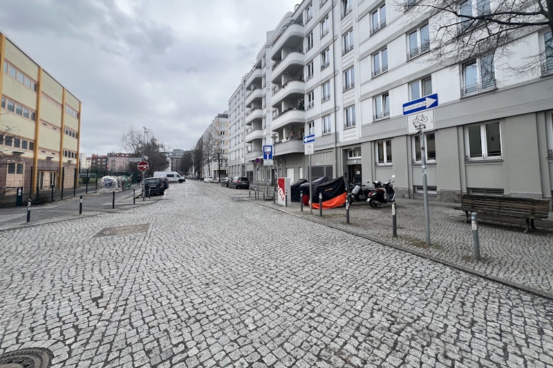 In Friedrichshain gibt es eine Straße, die von zwei Seiten nicht befahrbar ist. Autofahrer ignorieren das, weil ihnen nichts anderes übrig bleibt.