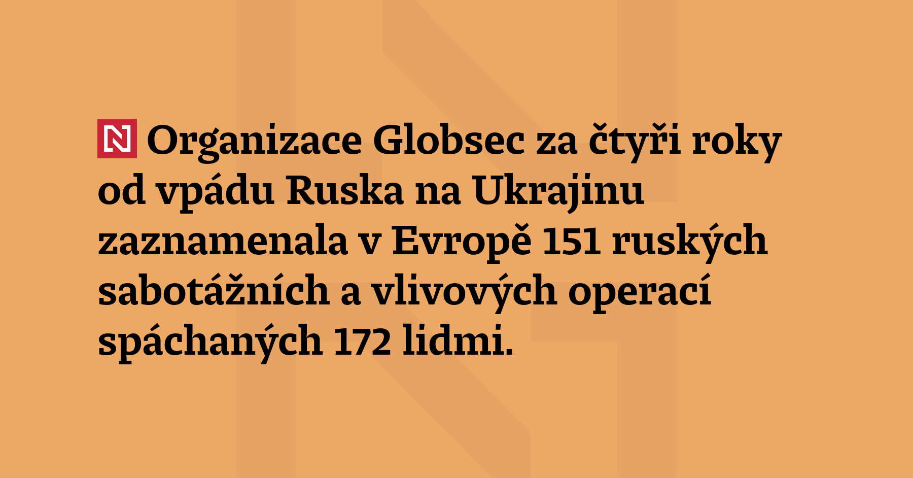Organizace Globsec za čtyři roky od vpádu Ruska na Ukrajinu zaznamenala v Evropě 151 ruských sabotážních a vlivových operací spáchaných 172 lidmi. Počet osob podílejících se na takových akcích vzrostl oproti loňskému podzimu o 41. Data Globsec byla sbírána od začátku plnohodnotné invaze Ruska na Ukrajinu do poloviny letošního února. (Globsec)