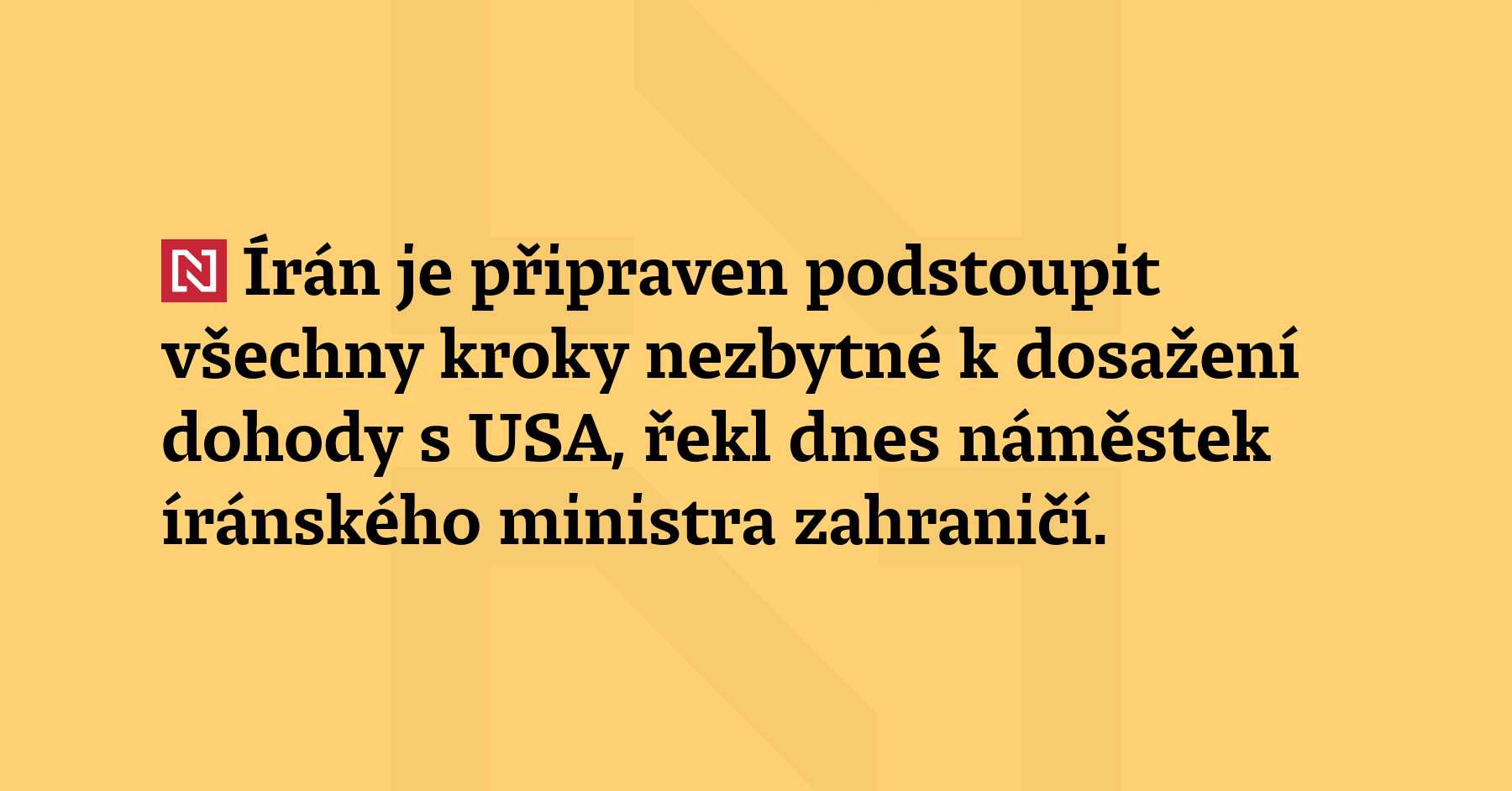 Írán je připraven podstoupit všechny kroky nezbytné k dosažení dohody s USA, řekl dnes náměstek íránského ministra zahraničí. Země se v současnosti chystají na další kolo rozhovorů. (Reuters)