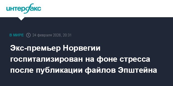 Бывший премьер-министр Норвегии, бывший генсек Совета Европы Торбьёрн Ягланд госпитализирован после публикации документов финансиста Джеффри Эпштейна, сообщил Dagbladet его адвокат Андерс Бросвит.