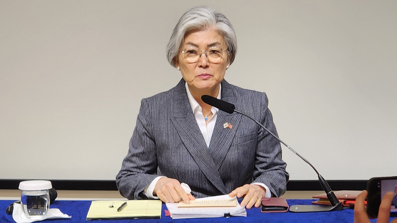 ▲ 강경화 주미대사가 24일 워싱턴 DC의 한국 문화원에서 한국 특파원단과 간담회를 하고 있다.강경화 주미대사는 현지시간 24일, 미…