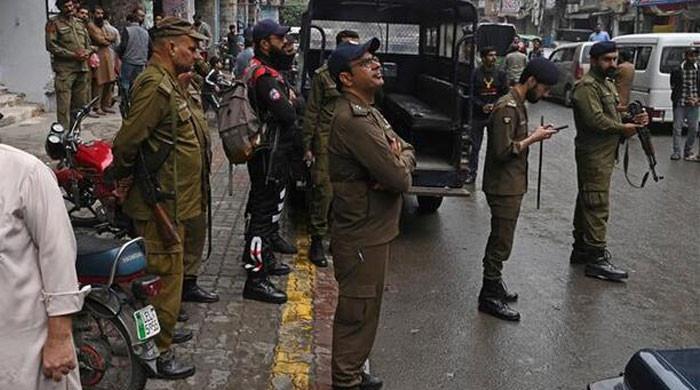 Police personnel patrol a market in Lahore on November 10, 2023. Punjab police registered case against two journalists on July 26 and July 29, 2025. — APP/File At least two policemen were martyred, while another was injured in a suicide attack on Dajal checkpost in...