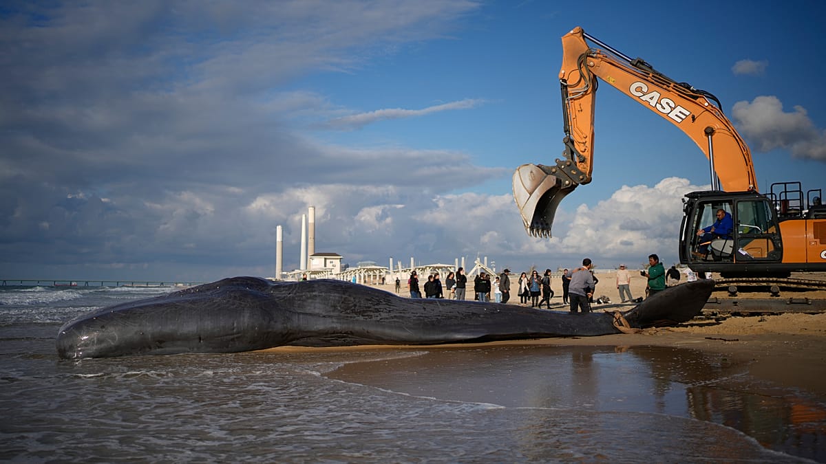 На юге Израиля на одном из пляжей найден погибший кашалот. Это исчезающий вид, и гибель животного привлекла внимание ученых.