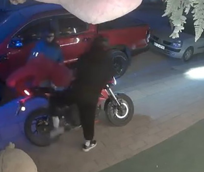 Antalya'da motosikletli şahıslar çiçekçi dükkanının önünde bulunan peluş ayıyı çalarak kayıplara karıştı.