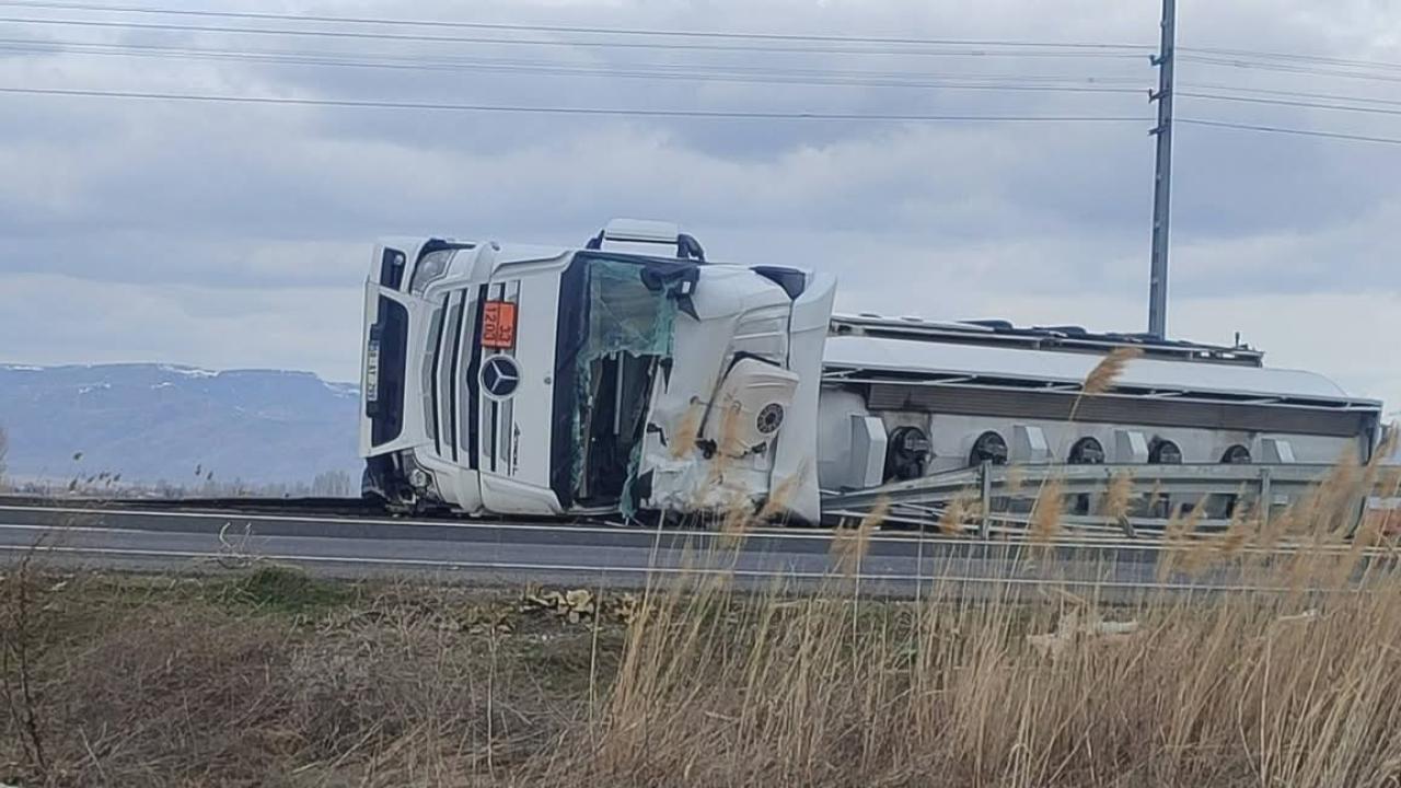 Kayseri’de akaryakıt yüklü tanker devrildi: 1 yaralı