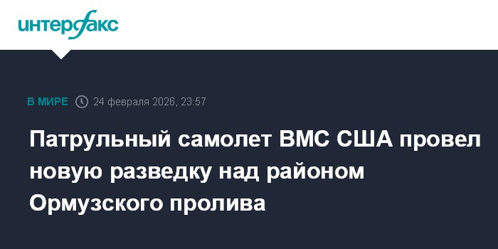 Патрульный противолодочный самолет P-8A Poseidon ВМС США во вторник провел очередную разведку над Ормузским проливом к югу от Ирана, следует из данных авиационного ресурса Flightradar24.