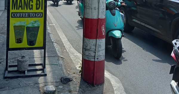 Trên đường Nguyễn Tất Thành, phường Xóm Chiếu, TP HCM, một số trụ điện đặt dưới lòng đường, gây nguy hiểm cho người tham gia giao thông (ảnh)