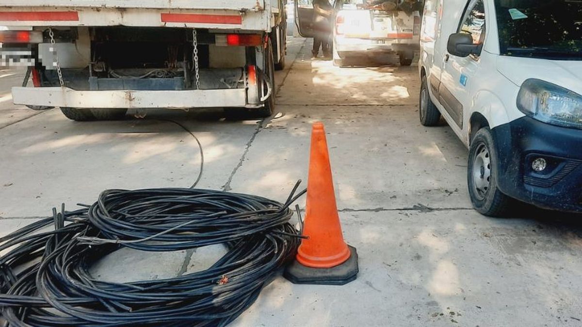 Los sospechosos fueron sorprendidos por la Unidad Policial Metrotranviaria mientras intentaban trasladar 150 metros de cable en Las Heras.