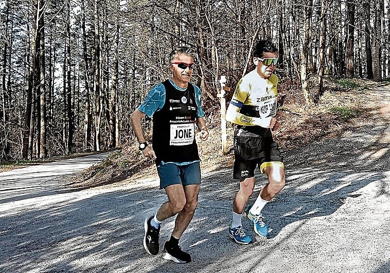Javi Conde e Igor Antón ascienden corriendo la vertiente que afrontarán por primera vez en la Itzulia en favor de la igualdad paralímpica