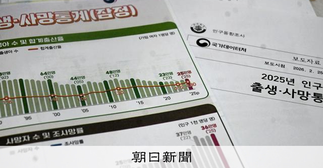 韓国の出生率「0・80」、2年連続上昇 コロナ後の婚姻増が影響 韓国の国家データ庁は25日、韓国の2025年の合計特殊出生率(1人の女性が生涯に産む見込みの子どもの数)が0・80(暫定値)で、前年の0・75から増加したと発表した。