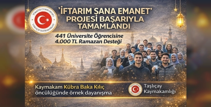 Taşlıçay'da 'İftarım Sana Emanet' projesi kapsamında 441 üniversite öğrencisine kişi başı 4 bin TL nakdi yardım yapıldı. İlçe esnafı ve hayırseverlerin desteğiyle Ramazan ayı öncesinde öğrencilere destek olundu.