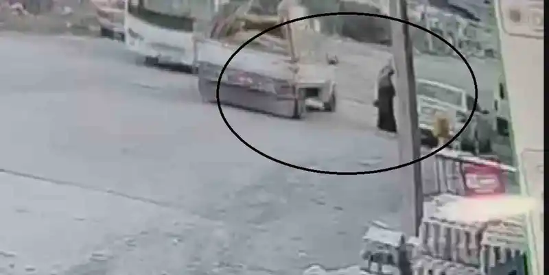 Pikabın açılan kapağı yayaya çarptı, anlar kamerada