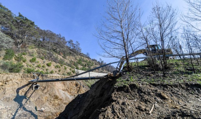 İzmir Büyükşehir Belediyesi, Ödemiş’te Çamyayla-Horzum yolunda orman yangınlarının ardından kesilen tomrukların yağışlar nedeniyle menfezi tıkaması sonucu çöken yolda onarım çalışmalarına başladı. Yoğun yağışta çökme riskini önceden tespit ederek can ve mal kaybını önleyen ekipler, alternatif güzergâh oluşturarak ulaşımın kesintiye uğramasını da engelledi. Menfez temizliği ve dolgu çalışmalarının ardından yol yenilenecek.