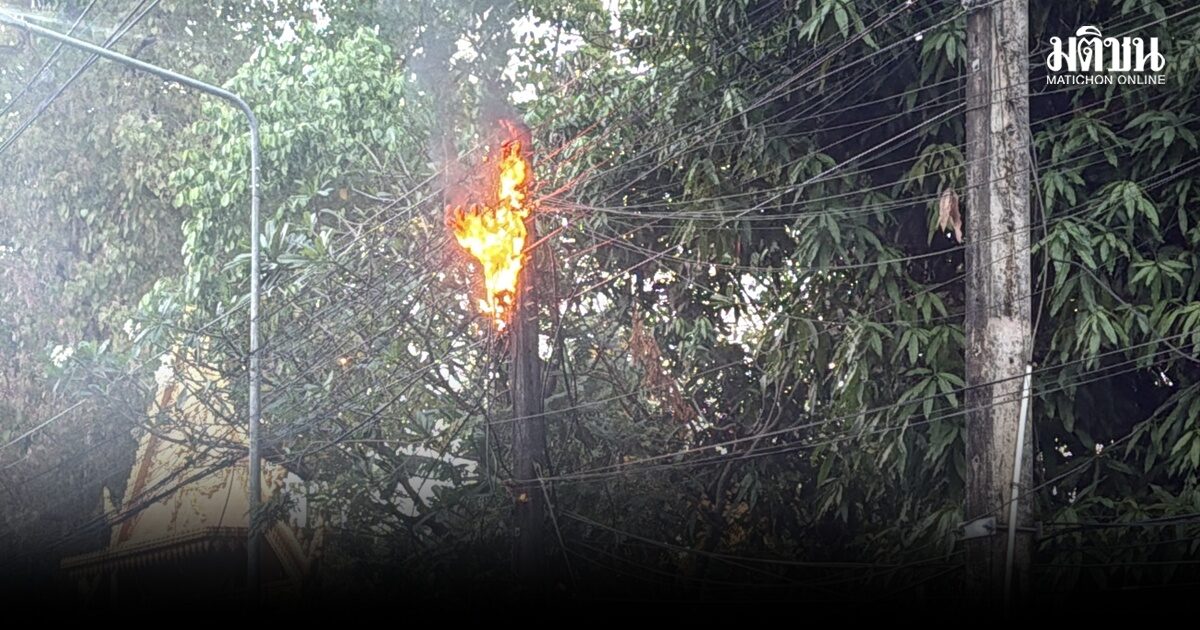กระรอก แทะสายไฟฟ้า ทำลัดวงจร ลุกไหม้ข้างวัด โชคดีพระสงฆ์เห็นก่อนรีบแจ้งเจ้าหน้าที่ดับทัน