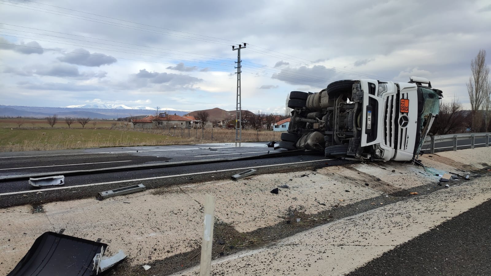Kayseri-Sivas karayolunda akaryakıt yüklü tankerin devrildiği kazada sürücü yaralandı.