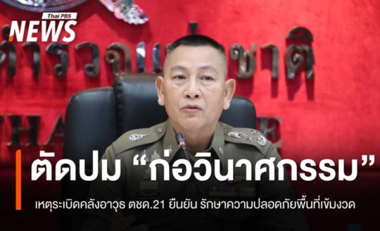 วันนี้ (25 ก.พ. 2569) ที่ สำนักงานตำรวจแห่งชาติ (ตร.) พล.ต.อ.กิตติ์รัฐ พันธุ์เพ็ชร์ ผู้บัญชาการตำรวจแห่งชาติ (ผบ.ตร.) กล่าวถึงกรณีเหตุระเบิดภายในคลังสรรพาวุธ กองกำกับการตำรวจตระเวนชายแดนที่ 21 (กก.ตชด.21) ต.เฉนียง อ.เมืองสุรินทร์ จ.สุรินทร์ เมื่อวันที่ 24 ก.พ.)ว่า สถานที่เกิดเหตุเป็นพื้นที่ซึ่งก่อสร้างมานานกว่า 39 ปี ภายในมีคลังอาวุธรวม 7 คลัง โดยเกิดเหตุขึ้น 2 คลัง โดยคลังทั้ง 2 จุด ใช้เก็บกระสุนปืน และเครื่องยิงจรวดอาร์พีจี ผบ.ตร. ยืนยันชัดเจนว่า สามารถตัดประเด็นการก่อวินาศกรรมออกไปได้ เนื่องจากบริเวณดังกล่าวมีมาตรการรักษาความปลอดภัยเข้มงวด ทั้งการติดตั้งกล้องวงจรปิด มีเจ้าหน้าที่จัดเวรยาม และมีรั้วรอบขอบชิด พร้อมตรวจตราตลอด 24 ชม. ทั้งวันราชการและวันหยุด สำหรับสาเหตุ เบื้องต้นสันนิษฐานว่า อาจเกิดจากการปะทุของอุปกรณ์หรือเครื่องจุดระเบิดภายในคลัง อันเนื่องมาจากสภาพอากาศร้อน ประกอบกับอาวุธที่เก็บรักษาไว้อาจมีอายุการใช้งานมานานและเสื่อมสภาพ อย่างไรก็ตาม ขณะนี้เจ้าหน้าที่ชุดเก็บกู้วัตถุระเบิด (EOD) และสำนักงานพิสูจน์หลักฐาน (สพฐ.) เข้าตรวจสอบพื้นที่แล้ว โดยจะต้องรอผลการตรวจพิสูจน์ทางนิติวิทยาศาสตร์อย่างเป็นทางการ ผบ.ตร. ระบุด้วยว่า หากโครงสร้างอาคารมีปัญหา เหตุการณ์ลักษณะนี้น่าจะเกิดขึ้นก่อนหน้านี้แล้ว จึงเชื่อว่า เป็นประเด็นทางเทคนิคเกี่ยวกับยุทโธปกรณ์มากกว่า พร้อมย้ำว่าไม่ต้องการให้สังคมเข้าใจว่า เป็นการลักลอบก่อเหตุของฝ่ายใด ทั้งนี้ เหตุการณ์ดังกล่าวไม่มีผู้เสียชีวิต มีเพียงผู้ได้รับบาดเจ็บเล็กน้อย และขณะนี้สามารถควบคุมสถานการณ์ได้ทั้งหมด โดยจะมีการรายงานผลการตรวจสอบอย่างละเอียดอีกครั้งเมื่อกระบวนการพิสูจน์หลักฐานแล้วเสร็จ เมื่อถามว่า การระบุว่าความร้อนอาจเป็นสาเหตุในการเกิดเหตุระเบิดครั้งนี้เป็นการด่วนสรุปหรือไม่ ผบ.ตร. ยืนยันว่าไม่ใช่การด่วนสรุป ทุกอย่างต้องขึ้นอยู่กับพยานหลักฐาน ซึ่งขณะนี้อยู่ระหว่างการตรวจสอบโดยละเอียด นายกฯ ยันเพลิงไหม้คลังอาวุธ ไม่ใช่วินาศกรรม ไม่โยงชายแดนไทย-กัมพูชา ผู้เชี่ยวชาญเปิด 3 องค์ประกอบความร้อน เพลิงไหม้คลังกระสุน กก.ตชด.21 สุรินทร์ ไทม์ไลน์เพลิงไหม้คลังกระสุน กก.ตชด.21 สุรินทร์ - จนท.เจ็บ 1 นาย คาดสาเหตุอากาศร้อน มทบ.25 เผยคุมเพลิงได้แล้ว เหตุคลังกระสุนระเบิด ตชด.21 - ปิดพื้นที่กันปะทุซ้ำ ผบ.ตร.สั่งกันบุคคลออกจากรัศมีเหตุระเบิดคลังกระสุน กก.ตชด.21 เกิดเหตุระเบิดคลังกระสุน กก.ตชด.21 ค่ายสุรินทร์ภักดี จ.สุรินทร์ - จนท.เร่งคุมเพลิง