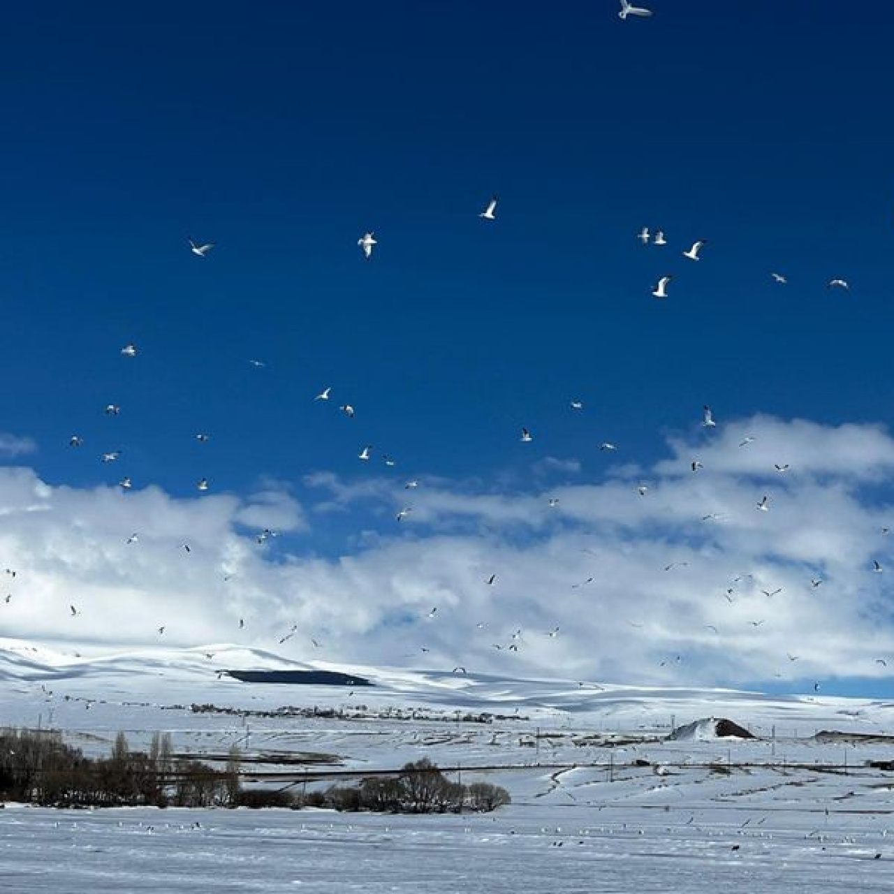 Kars'ta bulunan Çıldır Gölü'nde dikkat çeken bir tablo ortaya çıktı. Kentte havaların mevsim normallerinin üzerinde seyretmesiyle martılar erken geldi. Ancak bölgeye gelen martılar, buzla kaplı gölde açlık tehlikesiyle karşı karşıya kaldı