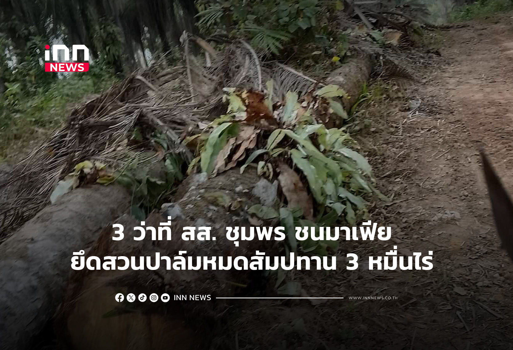 3 ว่าที่ สส. “บ้านใหญ่ชุมพร” ไม่ทน ถูกกลุ่มอิทธิพลท้องถิ่น อ้างชื่อ เข้ายึดสวนปาล์มหมดสัมปทานกว่า 3 หมื่นไร่ ในป่าสงวนแห่งชาติ เปิดโปงทำเป็นกระบวนการ มีทั้งผู้นำท้องที่ นักการเมืองท้องถิ่น ร่วมมือกับเจ้าหน้าที่รัฐ