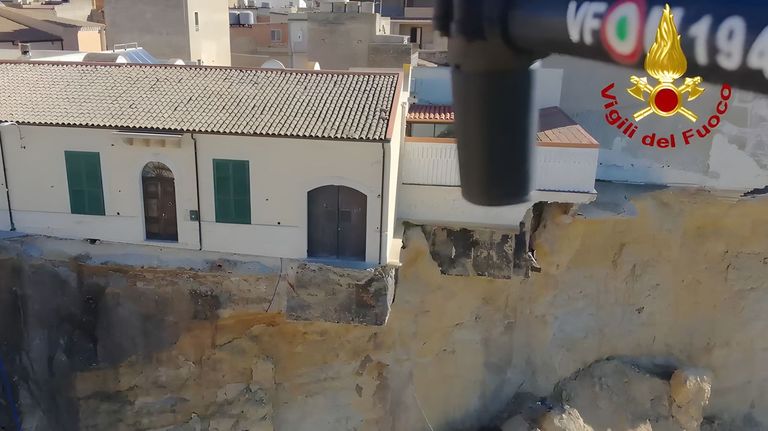 Niscemí lleva un mes al borde de un gigantesco barranco abierto por un corrimiento de tierra y ahora los esfuerzos se centran en salvar los libros de una biblioteca que ha quedado suspendida en el vacío