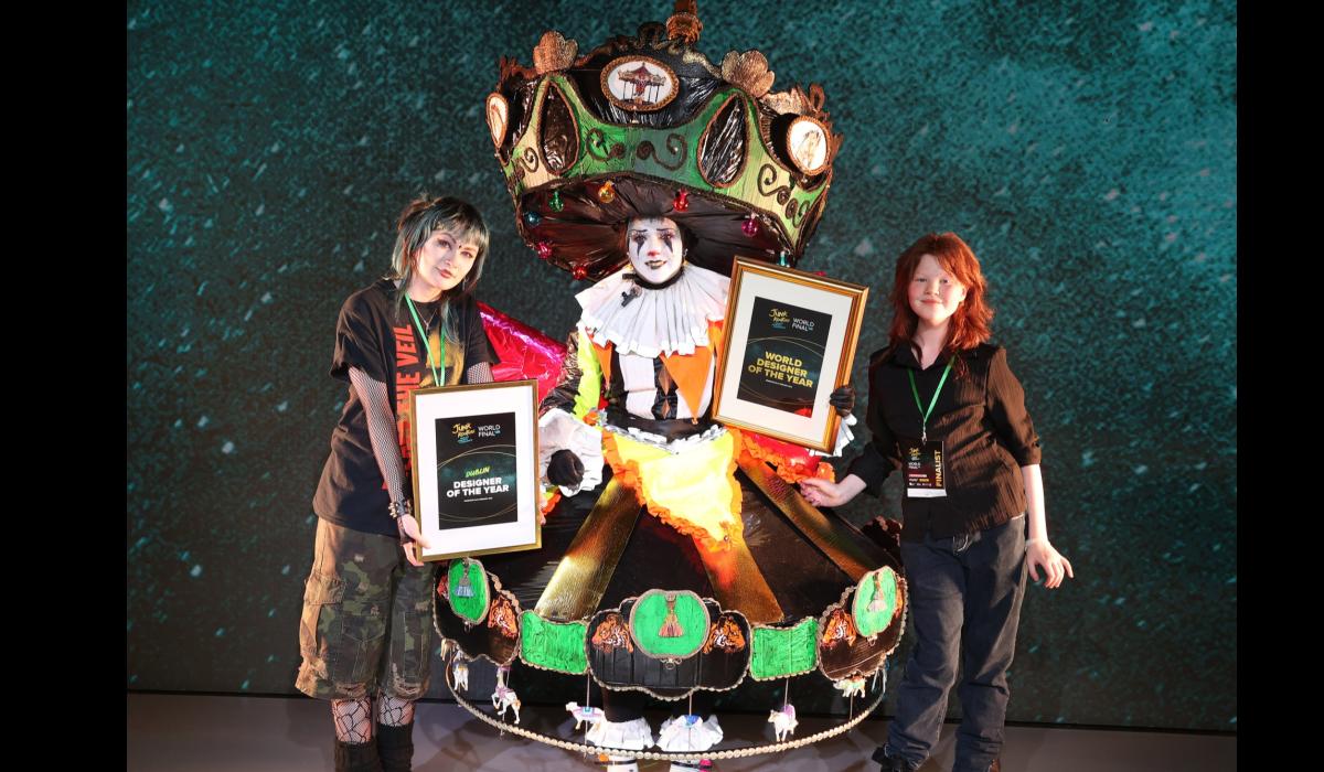 Students from Salesian Secondary College, Lauren O’Neill, Alexandra Giltenane and Sarah Kinnnane also scooped the Dublin Designer of the Year Award A TEAM of Limerick students has claimed one of the most coveted titles in sustainable fashion, after their carnival-inspired creation was crowned