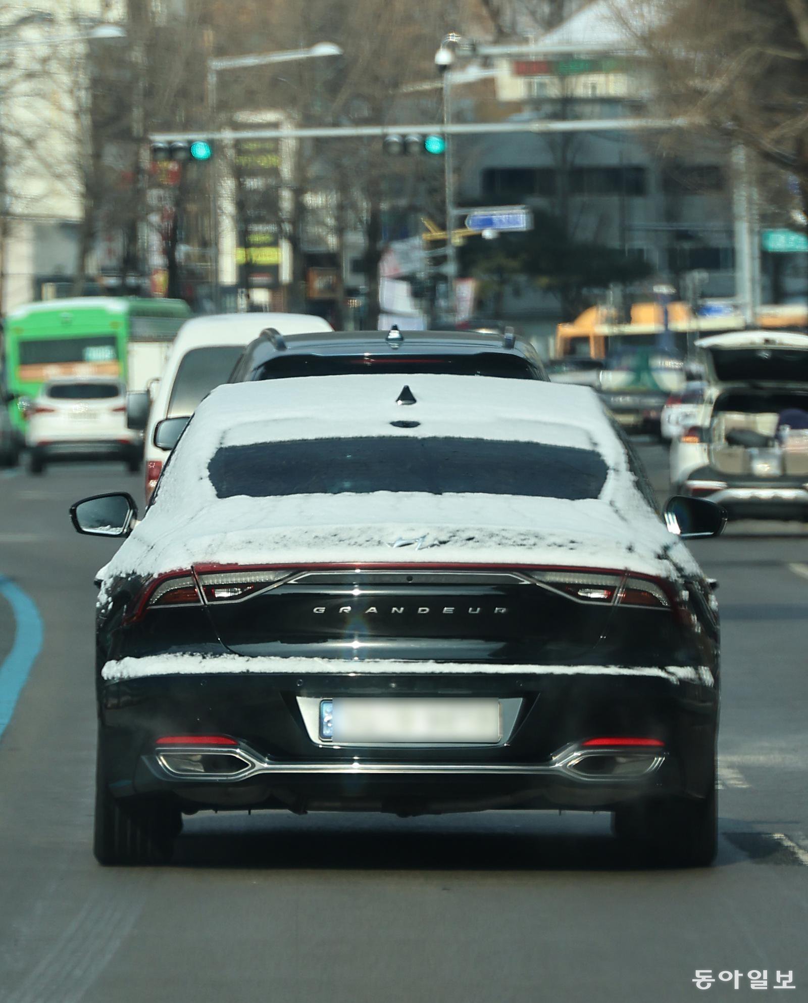 검은 차 위에 하얀 눈이 내려앉아 또렷한 흑백 대비를 이룹니다. 차는 미처 녹지 못한 눈을 이고 달립니다. 겨울에만 만날 수 있는 조합입니다. ―서울 서대문구 홍제동에서