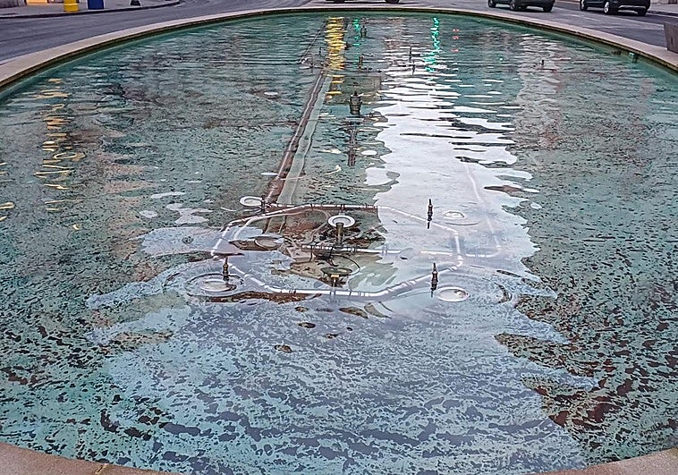 Las tareas de vaciado y limpieza de su vaso eliminan una vez al año este poso acumulado de polución, que tiene su origen en las partículas pulvurulentas en el ambiente de la céntrica y concurrida rotonda que recogen los chorros de agua