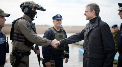 Για την κατάσταση των περιοχών που έχουν πληγεί από τις πρόσφατες πλημμύρες ενημερώθηκε ο Πρωθυπουργός Κυριάκος Μητσοτάκης κατά την επίσκεψή του το μεσημέρι της Τετάρτης (25/2) στον Έβρο από τον Περιφερειάρχη Ανατολικής Μακεδονίας και Θράκης Χριστόδουλο Τοψίδη και τους Δημάρχους Σουφλίου Παναγιώτη Καλακίκο, Διδυμοτείχου Ρωμύλο Χατζηγιάννογλου και Ορεστιάδας Διαμαντή Παπαδόπουλο. «Εμείς έχουμε δύο θέματα τώρα να χειριστούμε, το ένα ως προς την αποκατάσταση που είπε ο κ. Υπουργός -εδώ είναι ο κ. Κατσαφάδος, ο οποίος ήταν από την πρώτη στιγμή στις περιοχές- θα γίνουν όλα αυτά τα οποία πρέπει να γίνουν. Ως προς τα νερά, ξέρετε ότι έχουμε ουσιαστικά συμφωνήσει με τη Βουλγαρία, ώστε να έχουμε ένα “παράθυρο” μιας τετραετίας, με εγγυημένες ποσότητες νερού όσον αφορά στο πότισμα. Η δική μας δουλειά τώρα είναι να κάνουμε τα έργα υποδομής, όχι ως προς την προστασία από τις πλημμύρες, αυτό είναι άλλης τάξης θέμα, αλλά να σιγουρευτούμε ότι τουλάχιστον θα έχουμε νερό το καλοκαίρι και δεν θα είμαστε απολύτως εξαρτημένοι από τις ροές του ποταμού και από τις ορέξεις των φίλων μας. Να είμαστε ανεξάρτητοι. Έχουμε τέσσερα χρόνια για να τα κάνουμε αυτά τα έργα, τα έχουμε συζητήσει, συζητιούνται πολλές δεκαετίες, νομίζω τώρα έχει έρθει η ώρα να τα κάνουμε. Εμείς, κ. Περιφερειάρχα, θα προσθέσουμε και άλλα 10 εκατομμύρια, θα πάμε στα 30 εκατομμύρια για την Ολοκληρωμένη Χωρική Επένδυση (ΟΧΕ) του Έβρου, ώστε να μπορούμε να έχουμε κάποια χρηματοδοτικά εργαλεία να παρέμβουμε και άμεσα και πιο μεσοπρόθεσμα», δήλωσε ο Κυριάκος Μητσοτάκης. Αναβάθμιση μιας βασικής πύλης εισόδου στην Ελλάδα Ο Πρωθυπουργός επισκέφθηκε νωρίτερα τον Συνοριακό Σταθμό των Κήπων, όπου είναι σε εξέλιξη εργασίες για την αναβάθμιση και επέκταση των εγκαταστάσεων, στο πλαίσιο του ευρύτερου σχεδίου για την αναμόρφωση του συνοριακού περάσματος και της σύνδεσης με την Τουρκία. Ο Πρωθυπουργός, συνοδευόμενος από τον τον Περιφερειάρχη Ανατολικής Μακεδονίας και Θράκης Χριστόδουλο Τοψίδη και τον Γενικό Γραμματέα Αποκεντρωμένης Διοίκησης Μακεδονίας-Θράκης Δημήτρη Γαλαμάτη είχε την ευκαιρία να ενημερωθεί για την πορεία των εργασιών στη βασική πύλη εισόδου και εξόδου προς την Τουρκία, από την οποία διέρχονται κάθε χρόνο περίπου 3 εκατομμύρια άτομα. Ο Κυριάκος Μητσοτάκης ενημερώθηκε για την πορεία των έργων, που περιλαμβάνουν την κατασκευή νέων στεγάστρων για τον διαβατηριακό και τελωνειακό έλεγχο, την ανέγερση νέων κτισμάτων για κτηνιατρικό και φυτοϋγειονομικό έλεγχο, ξεχωριστή δομή για διενέργεια ενδελεχών και στοχευμένων ελέγχων, χωροθέτηση ξεχωριστών σημείων στάθμευσης για διαφορετικούς τύπους οχήματος και δημιουργία διακριτών ζωνών ελέγχου για εμπορικές και επιβατικές ροές. Ο Πρωθυπουργός είχε επίσης την ευκαιρία να επισκεφτεί το φυλάκιο των Κήπων και να συνομιλήσει με αξιωματικούς και οπλίτες. Ολοκληρώνοντας την επίσκεψή του και αναφερόμενος στη φύλαξη των συνόρων το 2020, ο Κυριάκος Μητσοτάκης δήλωσε: «Έχουμε κάθε λόγο να είμαστε υπερήφανοι για τη διαχείριση που έγινε τότε. Και βέβαια, από τότε πάρα πολλά άλλαξαν και στον τρόπο με τον οποίο η Ευρώπη αντιλαμβάνεται πια τη φύλαξη των συνόρων. Τώρα είναι πολύ σημαντικό να δούμε και την καινούργια επένδυση η οποία γίνεται, γιατί η αλήθεια είναι ότι και αυτή η εικόνα ως πύλη εισόδου δεν μας τιμά. Θα γίνουν οι πρώτες σημαντικές παρεμβάσει