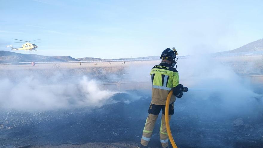 Un incendio declarado en la tarde de este martes en la Cañada de Albatana de Jumilla, en el límite con la comunidad autónoma de Castilla-La Mancha, ha movilizado a numerosos efectivos de emergencias tras detectarse una intensa columna de humo negro visible desde varios puntos. El fuego afectó a plásticos, palets y matorrales.