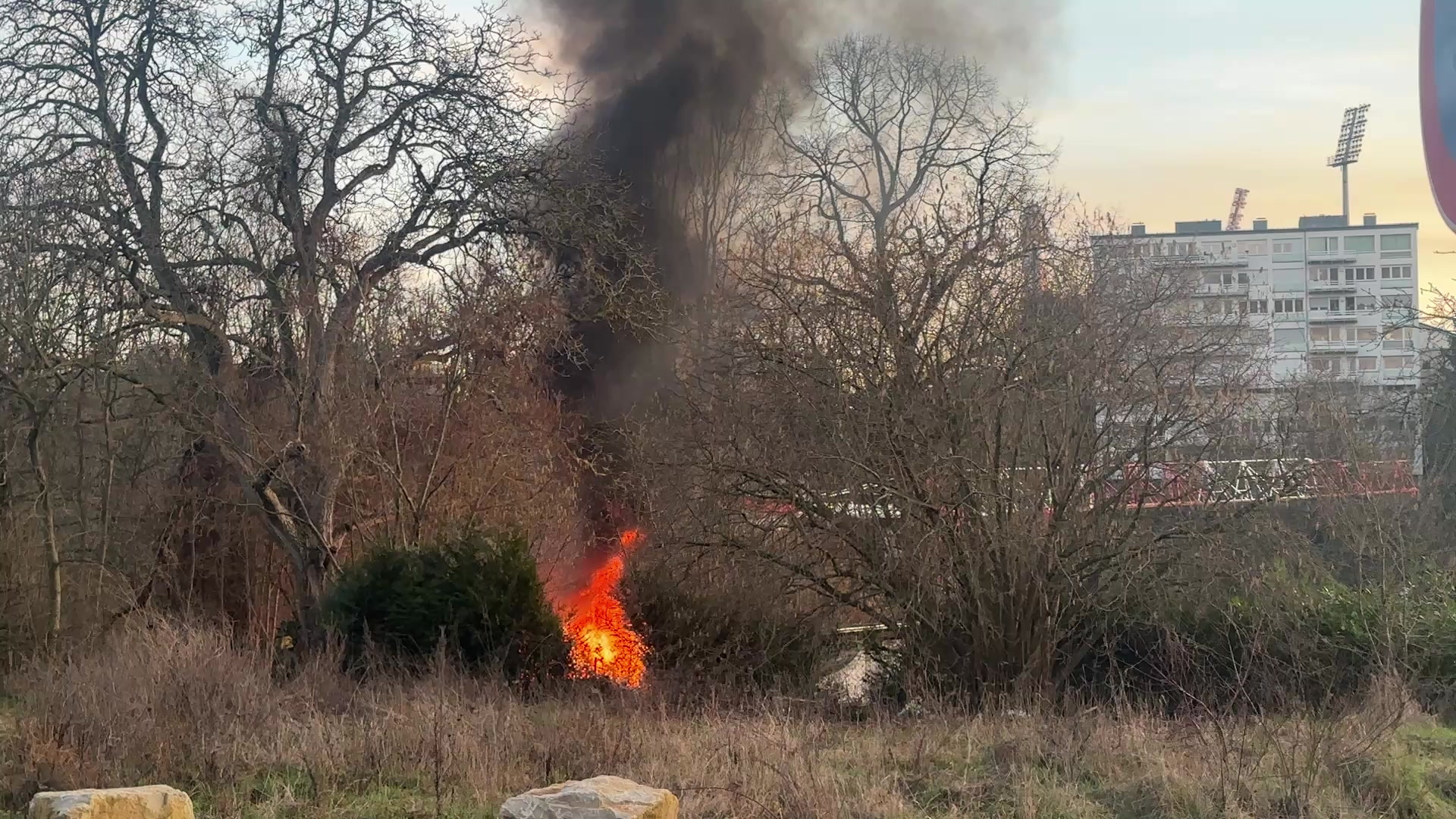 Op Videomaterial ass z'erkennen, datt vun der Roulotte, déi an enger Wiss am Rollengergronn stoung, net méi vill iwwreg ass.