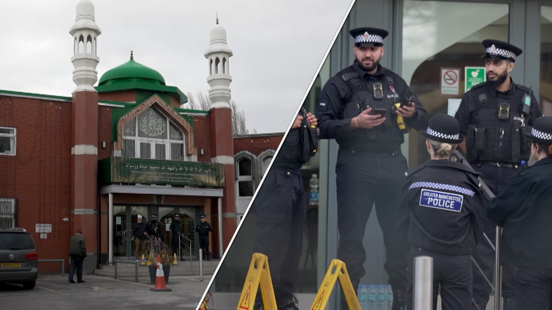 A man has been arrested for allegedly entering a mosque in Manchester carrying multiple weapons in a bag - including an axe, a knife and a hammer.