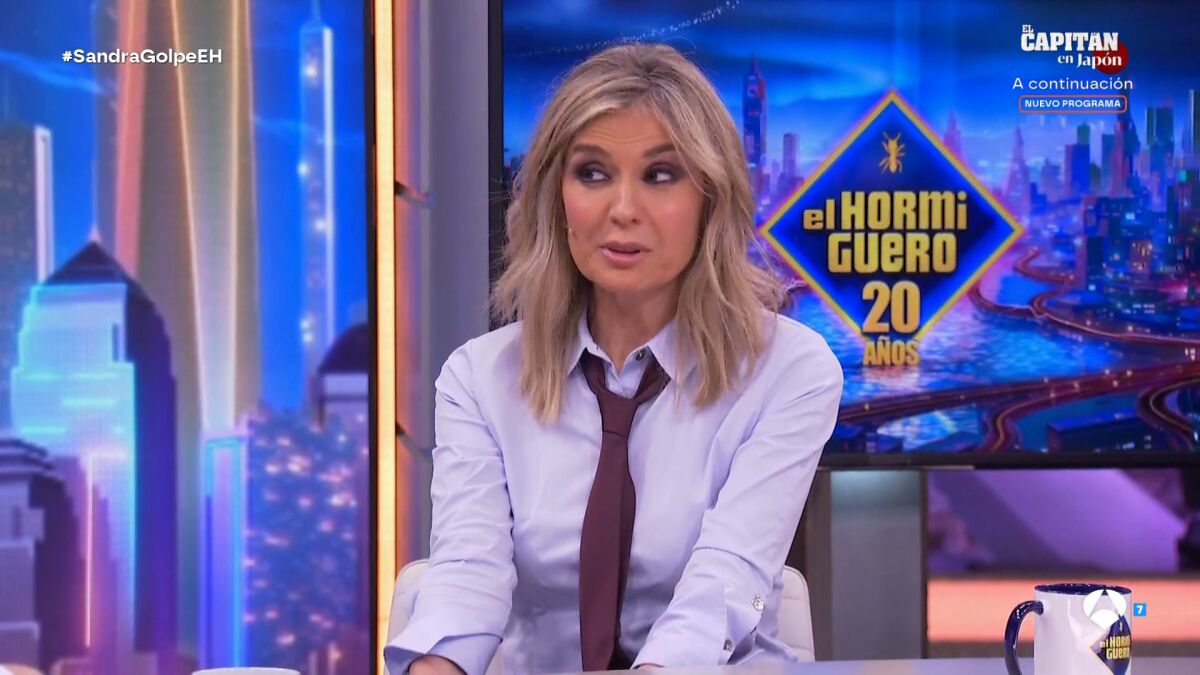 La presentadora y directora de Noticias 1 en Antena 3, Sandra Golpe, se sienta en el plató de El Hormiguero junto a Pablo Motos.